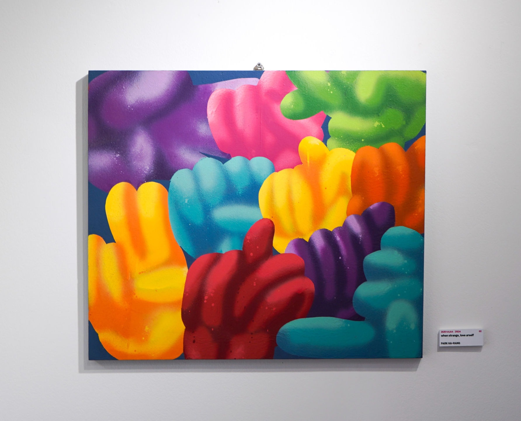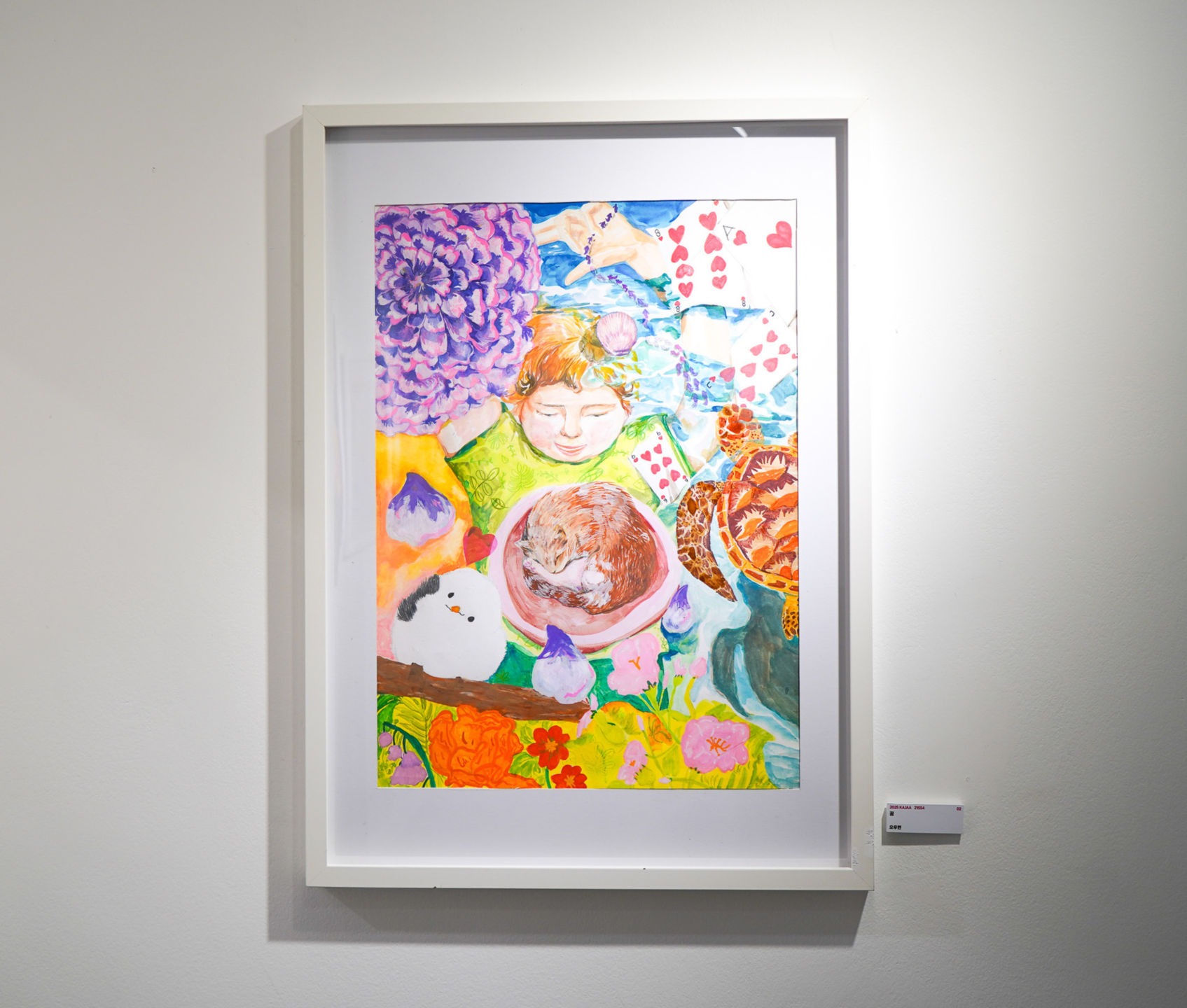이 작품은 익숙함이 빠져나가는 시간에도 스스로를 사랑하라는 메시지를 품고 있다. 나는 진로를 위해 전학을 결심했지만, 새 학교에서 친구들과 쉽게 어울리지 못해 이전 학교생활이 자주 그리웠고, 때로는 도망치고 싶기도 했다. 그러나 제주도에 온 목적을 다시 떠올리며 나에게 집중하자, 조금씩 나를 이해하고 사랑하게 되었고 결국 새로운 학교에도 잘 적응할 수 있었다. 이 과정에서 나는 보이지 않는 곳에서 전해지는 마음이 얼마나 큰 위로가 되는지 깨달았다. 나의 작품에 자주 등장하는 수화 역시 그러한 마음을 담고 있다. 눈에 보이지 않아도 손동작 하나로 마음을 전하고, 말 없이도 서로를 이해하는 수화처럼, 이 작품을 통해 낯선 환경에서 힘들어하는 이들에게 “괜찮아, 너는 잘하고 있어” 라는 조용한 응원의 마음을 전하고 싶었다.